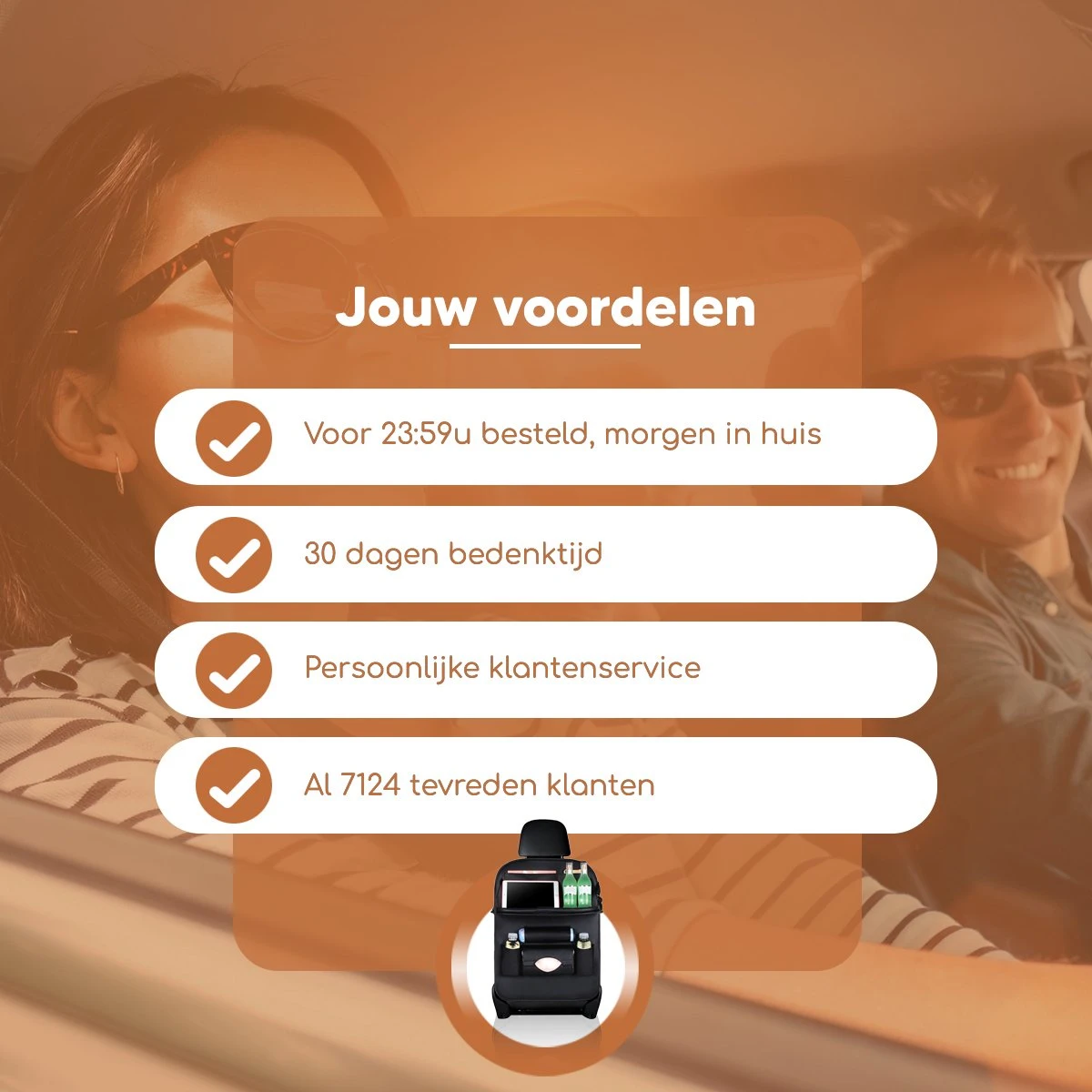 Een praktisch, origineel en leuk cadeau om aan je opa, oma, vader, moeder of vriend(in) te geven. Maar ook voor jezelf of voor kinderen een leuk cadeau zodat het allemaal netjes en georganiseerd is op de achterbank.