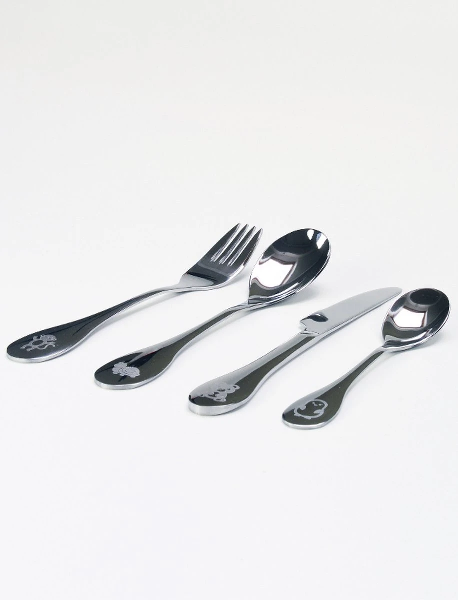 Deze kinderbestek set Beestenboel zal ieder kind geweldig vinden! Ieder bestekdeel heeft zijn eigen dier erop staan. Welke favoriete dier zal jou kind uitkiezen? Deze bestek set is gemaakt van hoogwaardig chroomstaal en heeft een hoogglans. De kwaliteit is uitstekend en gaat gegarandeerd jarenlang mee!