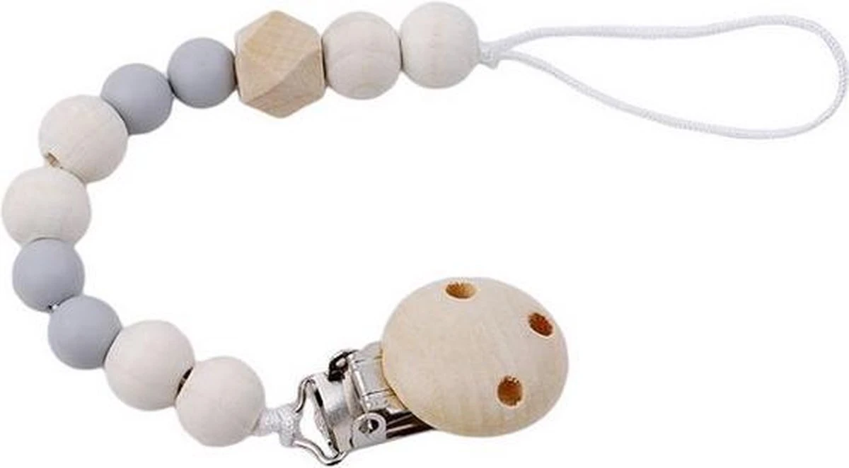 Kralen Fopspeenkoord Met Houten Clip | Speenkoord – Grijs